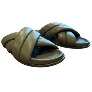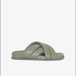 Revolve Anine Bing Lizzie Lamb Leather Slides in Green Khaki Sandals