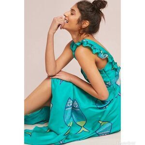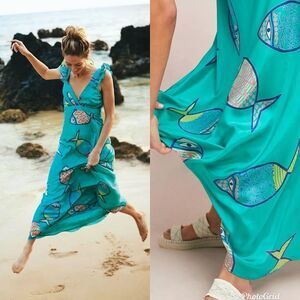Revolve Anthropologie Anupamaa Silk Summer School Vibrant Green Maxi Dress