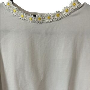 Caara Floral Flower Neckline Crewneck Puffsleeve T-Shirt