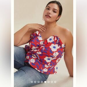 Revolve Anthropologie Hutch Cherry Red Ted Motif Strapless Ruffle Tube Top