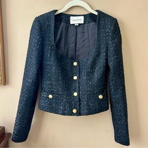 Revolve Assignment Bianca Jacket in Black Tweed Revolve Square Neck Size XS NWOT