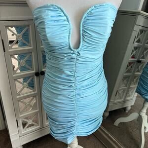 Revolve Bardot Tahlia Ruched Dress in Blue NWT Size 6