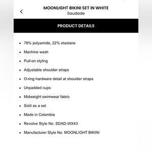 Revolve bikini set by Saudade. Size small, see measurements for details! Worn once for my bachelorette and hand washed/laid flat to dry after. Paid $185 and it’s sold out online