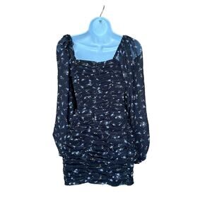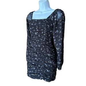 Revolve Black Floral Chiffon Mini Dress XXS Ruched Milkmaid More to Come $88 NEW