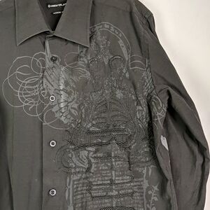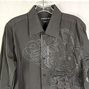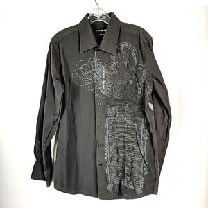 Revolve Black Studs Velvet Phoenix Dress Shirt Eagle Sz Medium Embroidered Roar