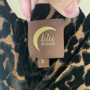 Black and brown leopard print velvet burnout maxi dress by Blu Moon, from Revolve. This gorgeous dress features a v-neckline, adjustable spaghetti straps, and a front wrap style skirt portion. Excellent, like new condition. Waist seam is stretchy. Bust across the front area measures approx. 19 inches.