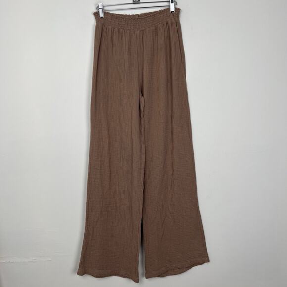 Revolve Bobi Los Angeles Sz Small Gauze Wide Leg Pants Mauve Tan 100% Cotton