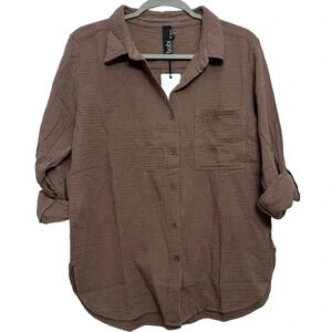 Revolve Bobi roll sleeve button up in beach gauze cotton fabric. Size medium