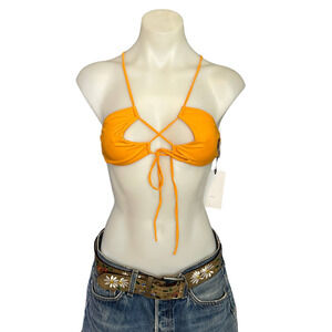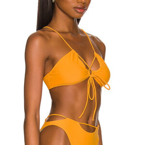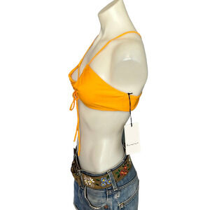 Revolve Bright Orange String Bikini Top SMALL Triangle Lovewave Lace Up $88 NEW