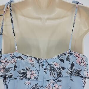 Revolve By The Way Womans size S Tie Shoulder Floral Mini Dress Blue Side Slit