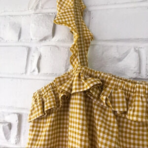 This adorable ruffled top from Capulet in the color "Saffron Gingham" is new with tags and in perfect condition! It has tank straps with ruffles on them and a cinched waistline and flouncy appearance! It is perfect for the summer and early fall!