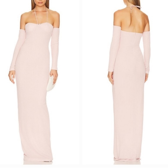 Polyester blend. Imported. Dry clean recommended. Fully lined. Hidden back zipper closure. Halterneck and off the shoulder styling. Contour bust.Lightweight ribbed fabric. Revolve Style No. COCA-WD6. Manufacturer Style No. C003 DRESS