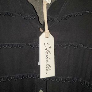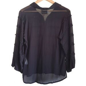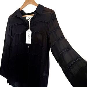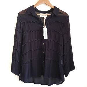 Cleobella Autumn Sheer Blouse Black Button Front Eyelet Trim Tiered Semi Sheer Small - NWT