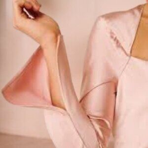 The Polarised Long Sleeve Mini Dress features a cowl neck and keyhole back with button closure in a silky rose colored bias cut mini dress that's ultra feminine and flattering.