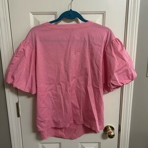 Revolve Elizabeth And James Bubble Puff Sleeve V-Neck Blouse Top Pink Medium