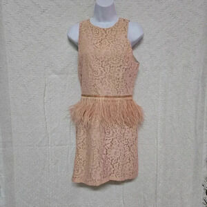 Revolve Endless Rose Lace Feather Replum Dress SZ Med NWT Apricot color cocktail