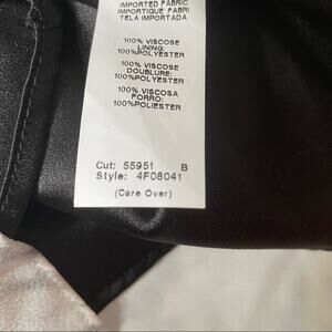 100% viscose. Dry clean only. Draped detail. Asymmetrical hem.