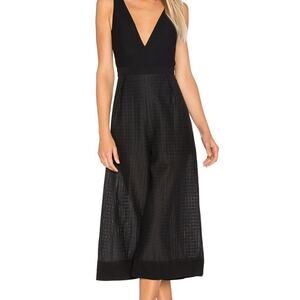 Revolve Finders Keepers Go Now Palazzo Jumpsuit in black. New with tags. Semi-sheer legs with textured pattern. Side waist cut-outs. Hidden back zipper.