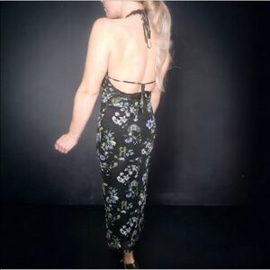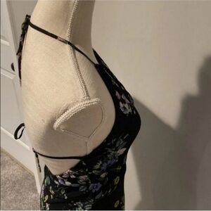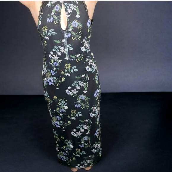 AFRM- Kalina Black Mesh Floral V-Neck Midi Dress