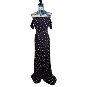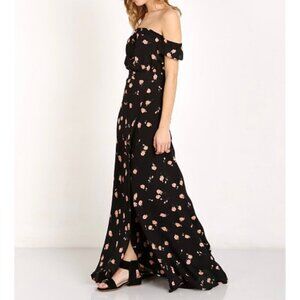 Revolve Flynn Skye Black Floral Tube Top Off-Shoulder Maxi Dress Small