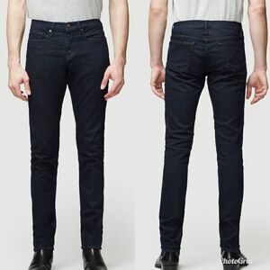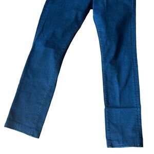 Features a 5-pocket styling, standard mid rise waist and a slim straight leg with slight tapering to the cuff in a vintage indigo wash and tonal stitching.
