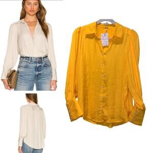 Revolve Free People button up t-shirt Serena Silky Shirt yellow XS NWT