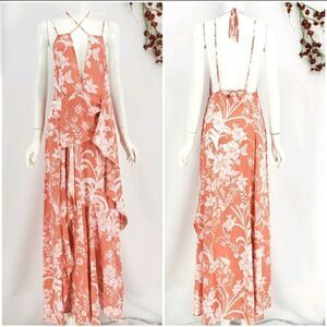 So femme and flirty, this forever timeless maxi dress is featured in a floral printed, silky fabrication with deep V-neckline and strappy back detail for added dimension.