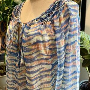 Revolve Gypsy 05 swirl print silk sheer tunic top