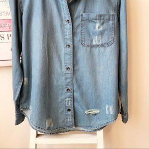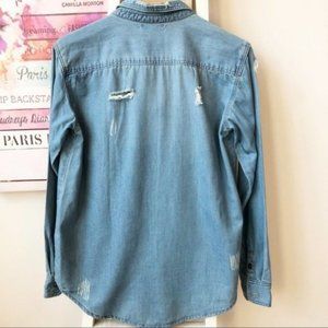 Revolve Heartloom Distressed Denim Button Down Shirt Women's Size Small NWOT