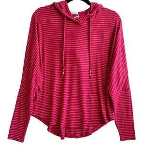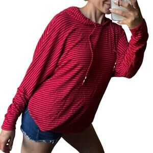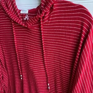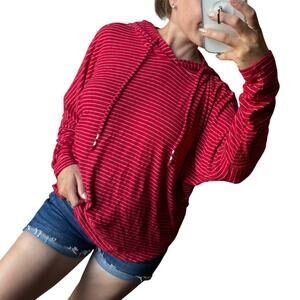 Revolve Hello Nite Small Cherry Red White Stripe Hooded Knit Pullover Sweater