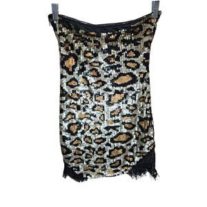 Stunning strapless dress with leopard print. Features shimmering sequins. Perfect for a night out.