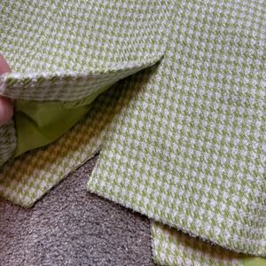 House of Harlow 1960 women’s houndstooth blazer with faux pearl buttons. Bright lime green and sparkling white colour with a lime green lining. Buttoned sleeve cuffs and 2 slip pockets.