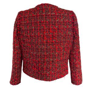 Elevate your style with this stunning red IRO Disco Jacket. The jacket is made of a wool blend and features a check pattern, short length, and long sleeves. It is perfect for various occasions such as travel, party/cocktail, casual, and business. The garment care is dry clean only, and it comes in size 18W, plus size type.