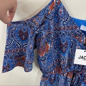 New with tags. Marrakech Express paisley cold shoulder dress. Adjustable spaghetti straps. Fully lined. 100% polyester. Tie waist.