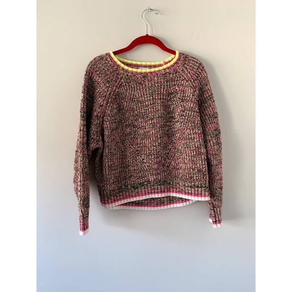 Item Description : Sold on REVOLVE, shopbop, etc. Great scoop neck knit sweater with a multicolor weave throughout and a neon pink and yellow border on the neckline, sleeves, and hem.