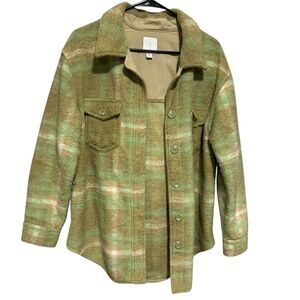 Revolve Joie Oversized Flannel Plaid Green Shacket Button Up Shirt Jacket