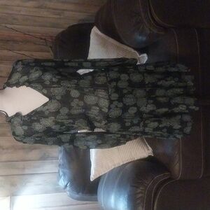 Revolve Karina Grimaldi Women Long Sleeve Navy Multi Print Mini Dress Size XS Navy floral Long sleeves with elasticized cuffs Elasticized waistband Ruffled trim collar with ties . Can be worn tied with keyhole detail or open as shown on mannequin. Satin lining. Boho Bohemian Fairecore Cottagecore Festival Preowned