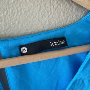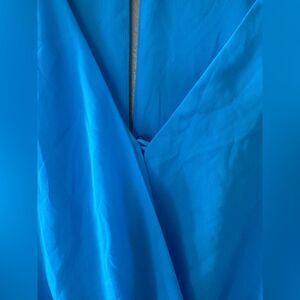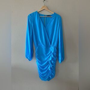 Revolve Krisa Bright Aqua Blue Ruched V Neck Long Sleeve Cocktail Dress Size XS