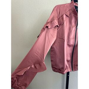 Revolve Krisa Los Angeles Ruffle Bomber Satin Jacket in Copper Size M