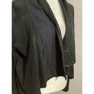 Revolve Krisa Metallic Black Navy Blue Open Front Long Sleeve Knit Cardigan L