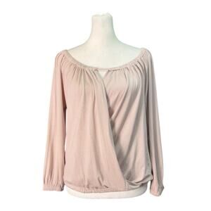 Revolve Krisa Off Shoulder Surplice Front Top in Novelle Blouse Soft Pink, Small, $138 retail