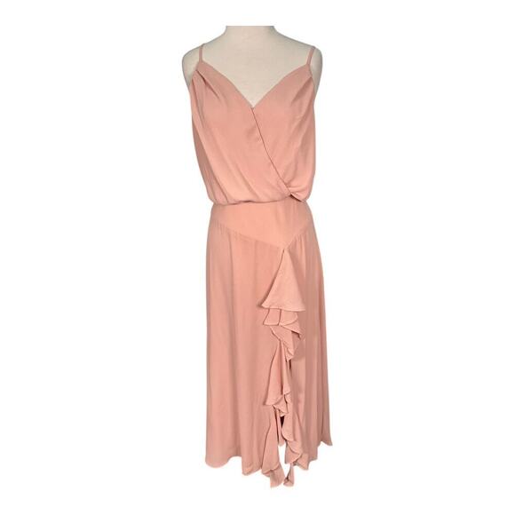 Revolve Krisa Salmon Pink Wrap-Style Bodice Thin Straps Ruffled Skirt Semi Formal Dress Size Medium