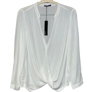 Revolve Krisa blouse faux wrap drapey surplus white v-neck lightweight size L