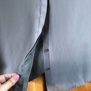 The REVOLVE KRISA Women’s Surplice Back Long Sleeve Chiffon Blouse in Gray, Size Medium, is a stylish and versatile top perfect for both party occasions and casual wear. The blouse features a V-neckline, puff sleeves, and a button closure, with a unique surplice back accent. Made from lightweight polyester chiffon, it offers a regular fit and a solid gray color that adds a touch of elegance to any outfit. The designer brand and couture style make this blouse a chic addition to any woman's wardrobe.
