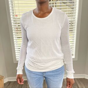 Revolve LACAUSA Open Weave Henley Scoop Neck Sweater Top