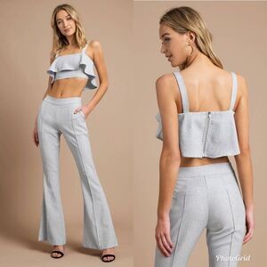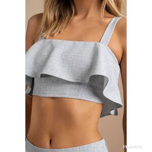 Revolve L’ATISTE Blue Grey Ruffle Flounce Crop Top, L