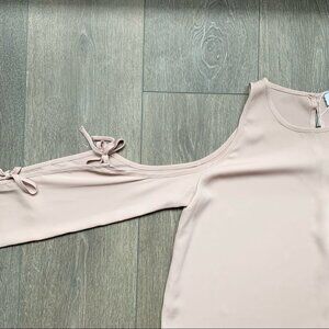 Revolve L'Academie Cold Shoulder Tie Long Sleeve Blouse Taupe Pink Size Medium