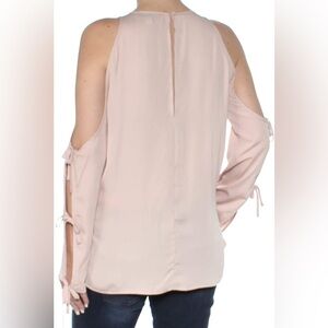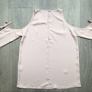 New Revolve L'Academie Cold Shoulder Tie Long Sleeve Blouse Taupe Pink.