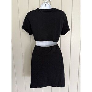 Revolve LNA Clothing Devan Twist Tee Mini Dress Short Sleeve S Small Black