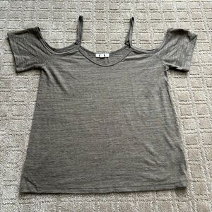 Revolve LNA Open Cold Shoulder Short Sleeve T Shirt Top XS Heather Gray Casual